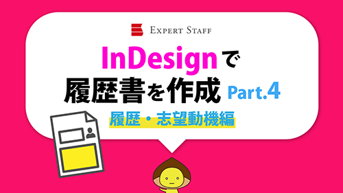 今回は、「InDesignで履歴書を作成 Part.4」(履歴・志望動機編)です。